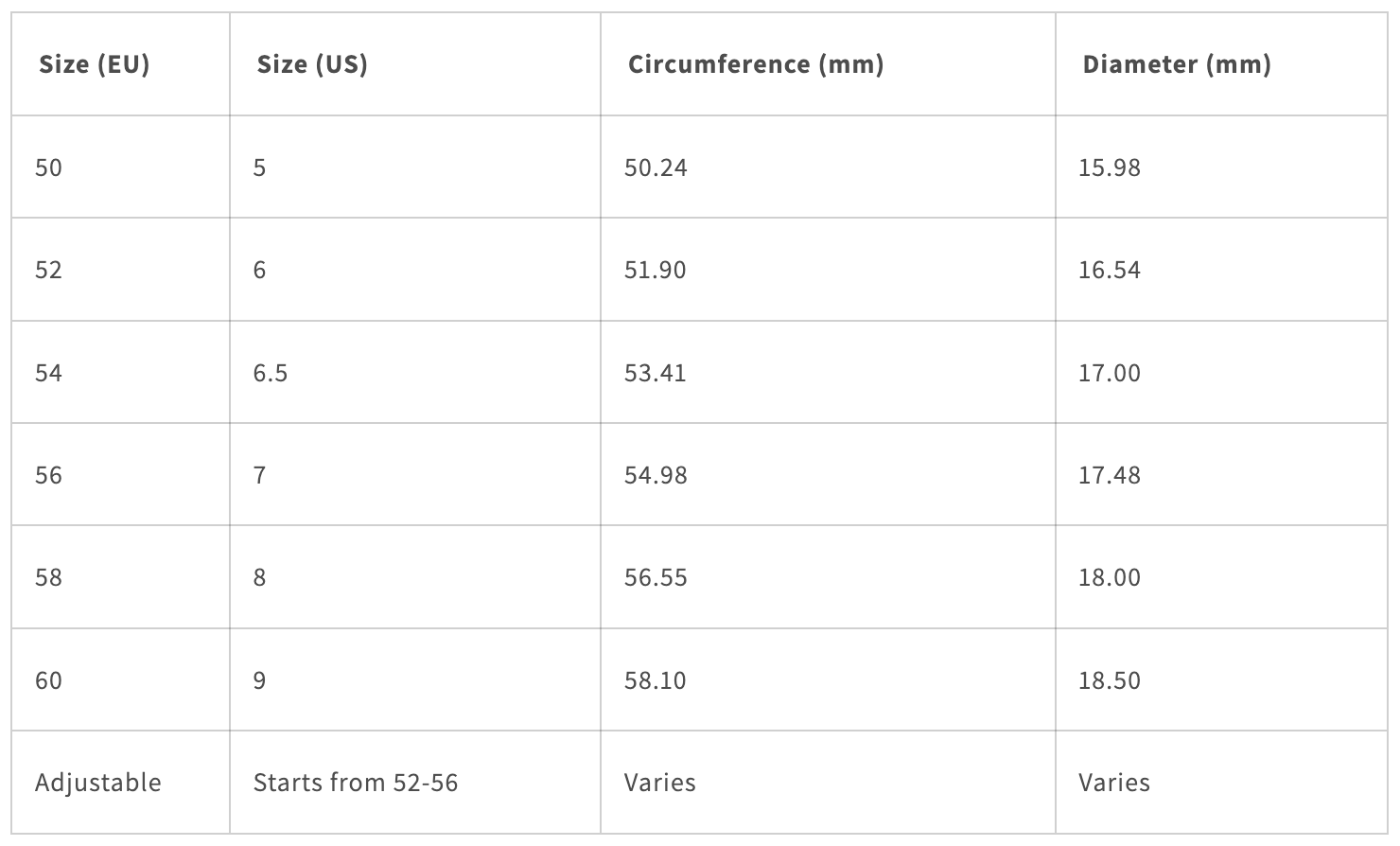 - Çoğu yüzük, yüzüğün tasarımına ve ne kadar ayarlama gerektiğine bağlı olarak yaklaşık 1 veya 2 AB bedeni büyütülebilir veya küçültülebilir.